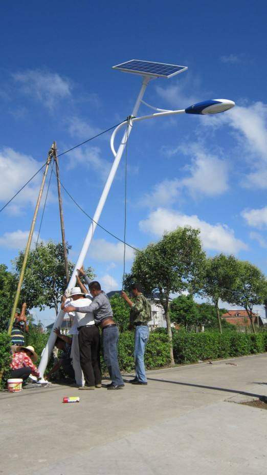 河北省承德雙灤區新農村建設,6米40瓦LED太陽能路燈安裝現場,本次項目共中標386套太陽能路燈,其中6米25瓦180套,4米40瓦206套,路燈安裝完畢后街道整體亮度能達到5Lux,為居民夜間出行提供了便利條件。